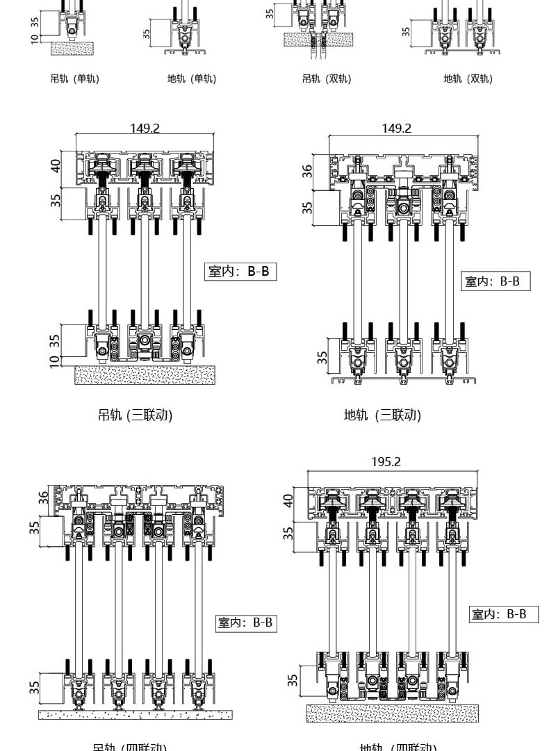 完美系统-推拉/吊躺门 完美40*12,12.0实心料
